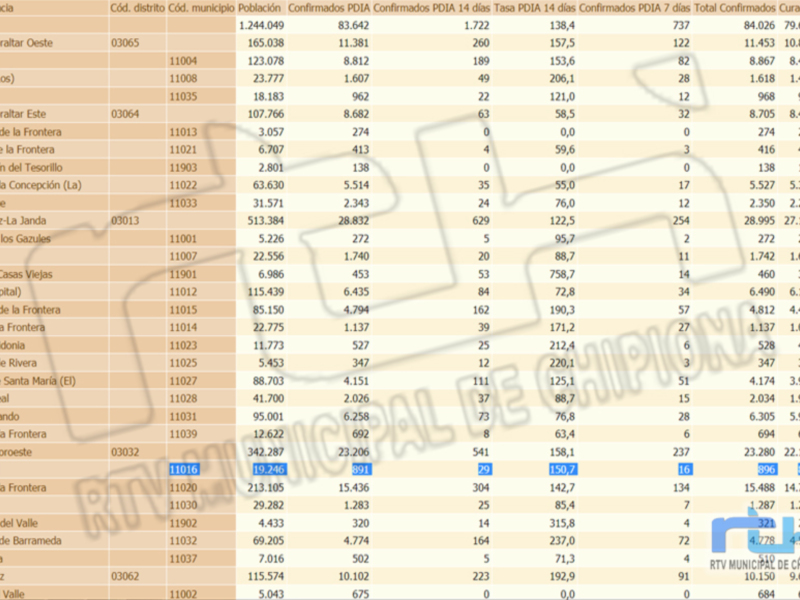 La tasa de incidencia acumulada en el distrito sanitario Jerez Costa Noroeste baja de nuevo mínimamente de 159,5 a 158,1, la media provincial lo hace de 140,8 a 138,4.