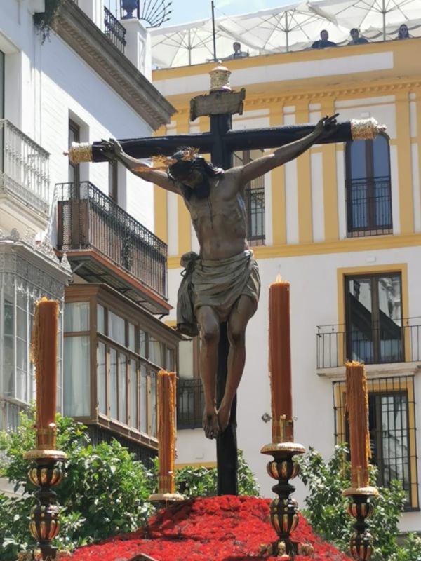 El Stmo. Cristo de Burgos de la muy querida hermandad del Cristo de Burgos, vuelve a su sede de la parroquia de San Pedro en el 450 aniversario de su hechura. Acompañado musicalmente por la Banda de Música Maestro Tejera. Todo un lujo para este 1 de junio.