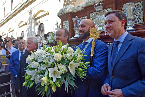 Vicente Delgado Romero, hizo entrega de una ofrenda floral al Grupo de Fieles de San Benito Abad