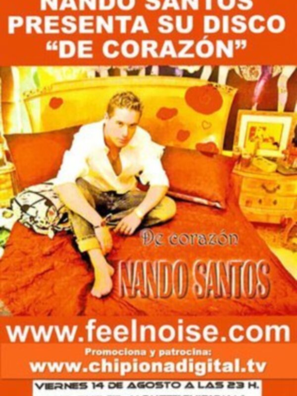 La música romántica con un toque flamenquito toma forma en la garganta del sevillano Nando Santos, un joven que con sentimiento y entrega ha conseguido ya importantes puestos en listas de éxitos nacionales e internacionales. Chipiona también esta de suerte, ya que podremos disfrutar de su voz en directo el próximo viernes, 14 de Agosto en el Pub El Monte a partir de las once de la noche. Podéis escuchar su primer single entrando en www.chipionadigital.tv en el apartado informativos tenéis un video que arranca solo, creo que me daréis la razón de su valía como cantante Pero además tras el gran apoyo que ha recibido en Vinaroz, en Sevilla y por la cadena COPE, creo que es nuestra obligación darle la acogida que merece en Chipiona.