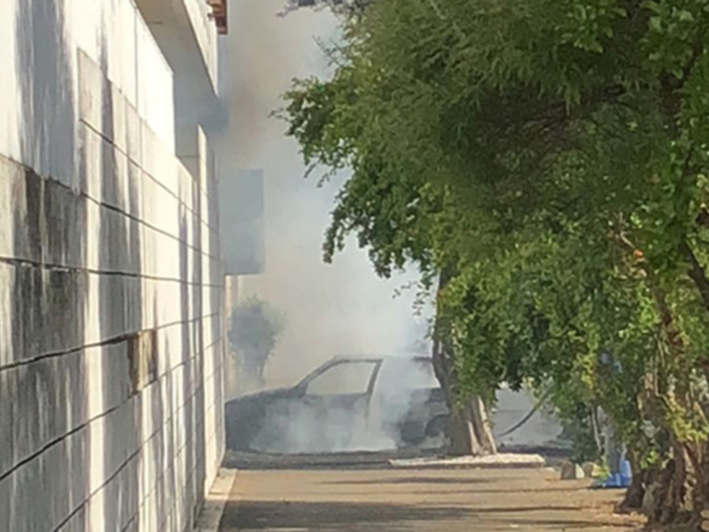 Arde un vehículo en los exteriores de Isla Mágica, se desconocen as causas.