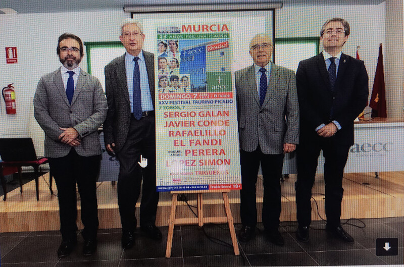 La Asociación Española contra el Cáncer (Aecc) y la empresa Toros Sureste S.A. han presentado hoy el cartel del festival taurino que tradicionalmente se celebra en Murcia a beneficio de esta asociación y que este año llega a su vigésimo quinta edición, lo que da una idea de la tradición e importancia de este festejo con fines sociales que se celebra en la plaza de La Condomina.