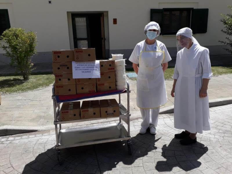 El equipo de voluntarios se ha hecho cargo de costear esta petición del centro de mayores. El Ateneo de Sevilla, a través de su Acción Social, sigue prestando su colaboración y atendiendo a quienes más lo necesitan durante todo el año y de forma muy especial durante estos días de cuarentena. En esta ocasión han hecho entrega de 111 kilos de queso a la residencia 'Las Hermanitas de los Pobres', de Luis Montoto. Estos productos han sido costeados directamente por los miembros del equipo de Acción Social del Ateneo de Sevilla atendiendo a la petición recibida desde la citada residencia. Esta acción social se une a otras anteriores, como fueron la donación de batas y mascarillas gracias a la colaboración de La Caixa y de las modistas de la Cabalgata de Reyes Magos del Ateneo, quienes confeccionaron estos equipos de protección sanitaria, que fueron repartidos a residencias, hospitales y centros de acogida. Además también se han entregado estas pasadas semanas geles hidroalcohólicos e impermeables gracias a las respectivas ayudas de Instituto Español y CitySightseeing.