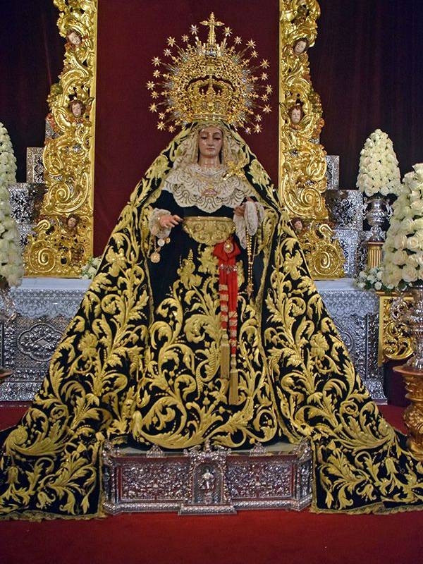Antonio Rendón . Alcalá del Río vivió un Viernes de Dolores marcado por un especial clima de recogimiento y hondura espiritual. La imagen de Nuestra Señora de los Dolores en su Soledad Coronada, titular de la Real, Muy Antigua, Ilustre y Fervorosa Hermandad y Cofradía de Nazarenos del Santo Entierro de Cristo en su Misericordia y Nuestra Señora de los Dolores en su Soledad Coronada, se presenta ya entronizada en el presbiterio de la iglesia parroquial de Nuestra Señora de la Asunción, en la localidad sevillana, con motivo de la celebración de la jornada conclusiva de su solemne Septenario y del tradicional besamanos.