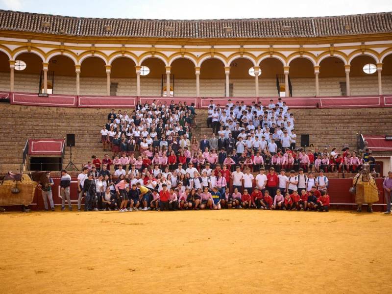 Los alumnos han podido disfrutar de talleres de toreo de salón, conocer las distintas suertes del toreo, coger un capote y una muleta, subirse a un caballo de picar, y aproximarse a la cultura y los valores de la Tauromaquia, en un escenario único como el ruedo de la Maestranza, además de conocer algunas de las dependencias de la plaza de toros.