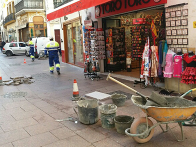 El pasado domingo 2 de Abril se pudo ver a operarios de contratas municipales realizando actuaciones de mejora en pavimentos y firmes en calle Sierpes y La Campana.