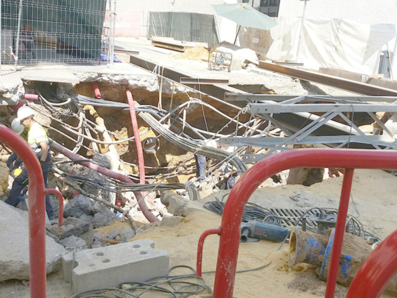 La obra de EMASESA que en unos días cumplirá los 11 meses desde su inicio el 31 de julio de 2017 se ha producido un hundimiento en el cruce de calle Arcos con Niebla.