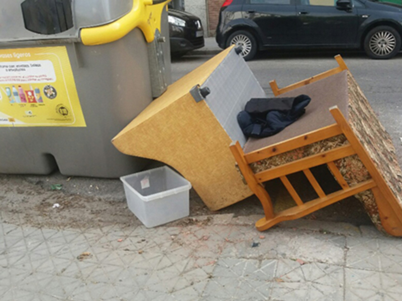 El 90% de los propietarios de estos enseres, no avisan al servicio de recogida gratuita y junto a los contenedores vemos muebles y enseres.