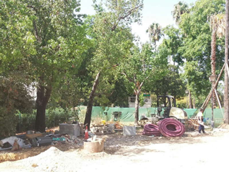 El Parque de los Príncipes, 12 meses afectado por la obra del colector de EMASESA.