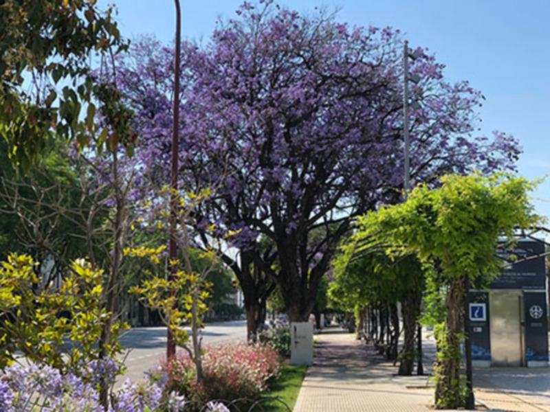 Mayo florido en Sevilla. El mes de mayo es un mes especialmente florido. En una misma calle podemos ver floraciones espectaculares de árboles y arbustos. Los colores de mayo el violeta, el morado, el rojo, el azul, el amarillo, el blanco; los olores el jazmín y el azahar.