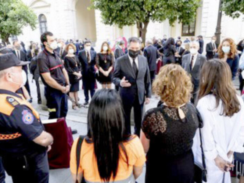 El Ayuntamiento de Sevilla ha celebrado hoy un acto institucional en memoria de las víctimas de la COVID-19 que se enmarca en los tres días de luto decretados en la ciudad.