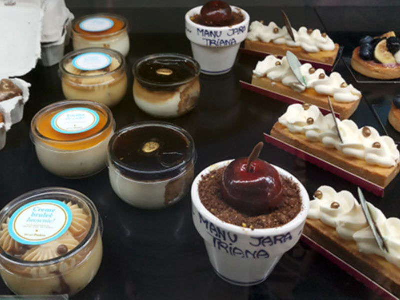 Además de las macetas con plantas, existen también las macetas dulces. Esta es la “maceta de Triana”, una receta artesanal que une la herencia de la pastelería árabe, la utilización de los frutos secos, con las nuevas técnicas pasteleras que forman frutos con chocolate sobre un bizcocho esponjoso. Esta es la tradición artesana de la casa Manu Jara toda una institución en la pastelería sevillana.