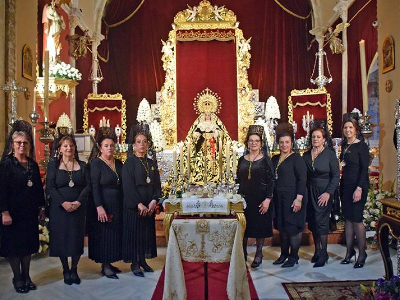 Antonio Rendón . Alcalá del Río vivió un Viernes de Dolores marcado por un especial clima de recogimiento y hondura espiritual. La imagen de Nuestra Señora de los Dolores en su Soledad Coronada, titular de la Real, Muy Antigua, Ilustre y Fervorosa Hermandad y Cofradía de Nazarenos del Santo Entierro de Cristo en su Misericordia y Nuestra Señora de los Dolores en su Soledad Coronada, se presenta ya entronizada en el presbiterio de la iglesia parroquial de Nuestra Señora de la Asunción, en la localidad sevillana, con motivo de la celebración de la jornada conclusiva de su solemne Septenario y del tradicional besamanos.